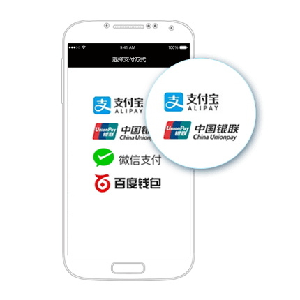 金易徳聚合支付平台,为iOS/Android原生/H5 App提供支付解决方案:支持微信支付、支付宝支付、银联手机支付、百度钱包等。